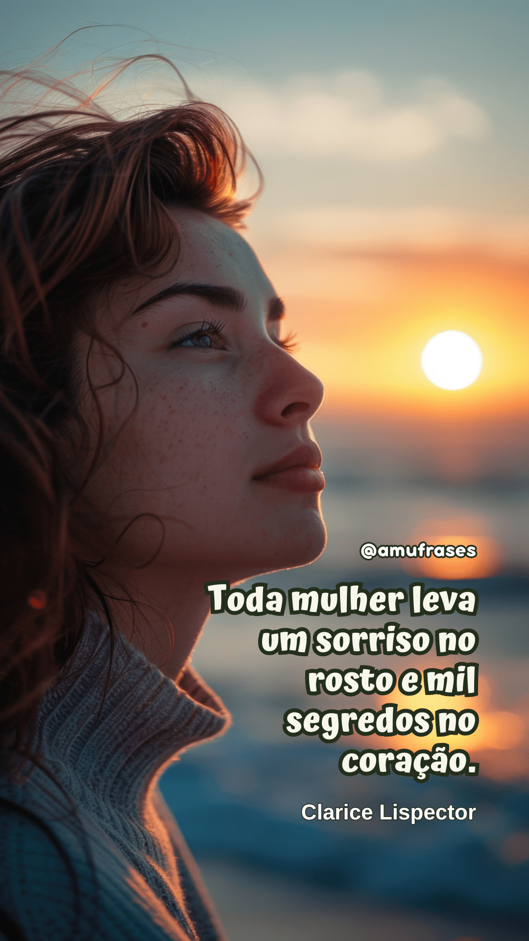 Toda mulher leva um sorriso no rosto e mil segredos no coração. Clarice Lispector – @amufrases