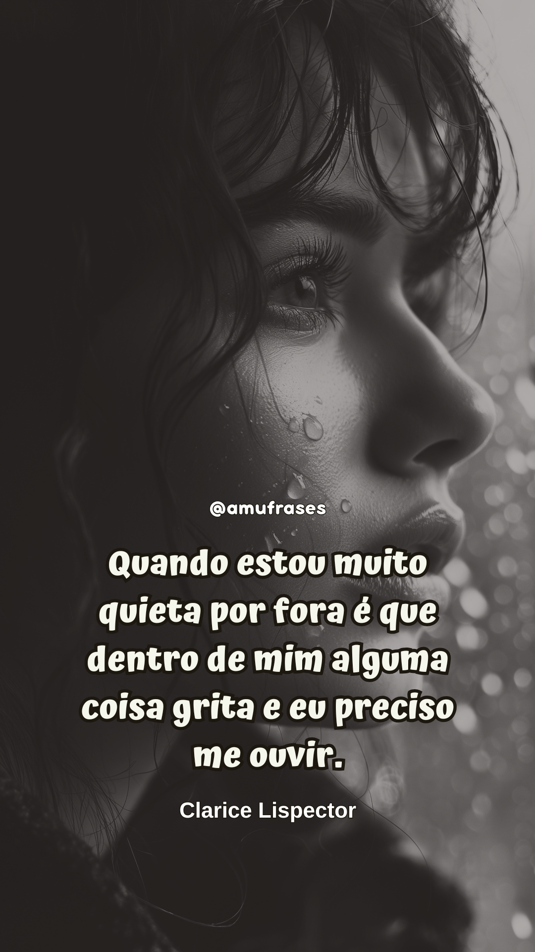 Quando estou muito quieta por fora é que dentro de mim alguma coisa grita e eu preciso me ouvir. Clarice Lispector – @amufrases