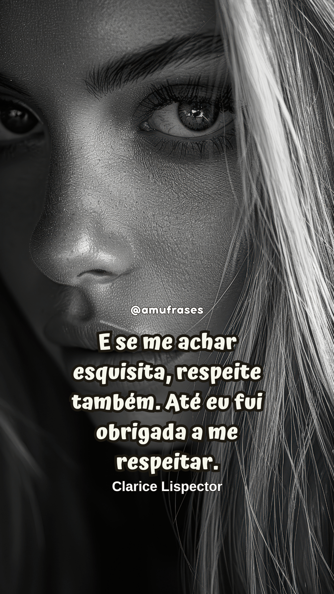 E se me achar esquisita, respeite também. Até eu fui obrigada a me respeitar. Clarice Lispector – @amufrases