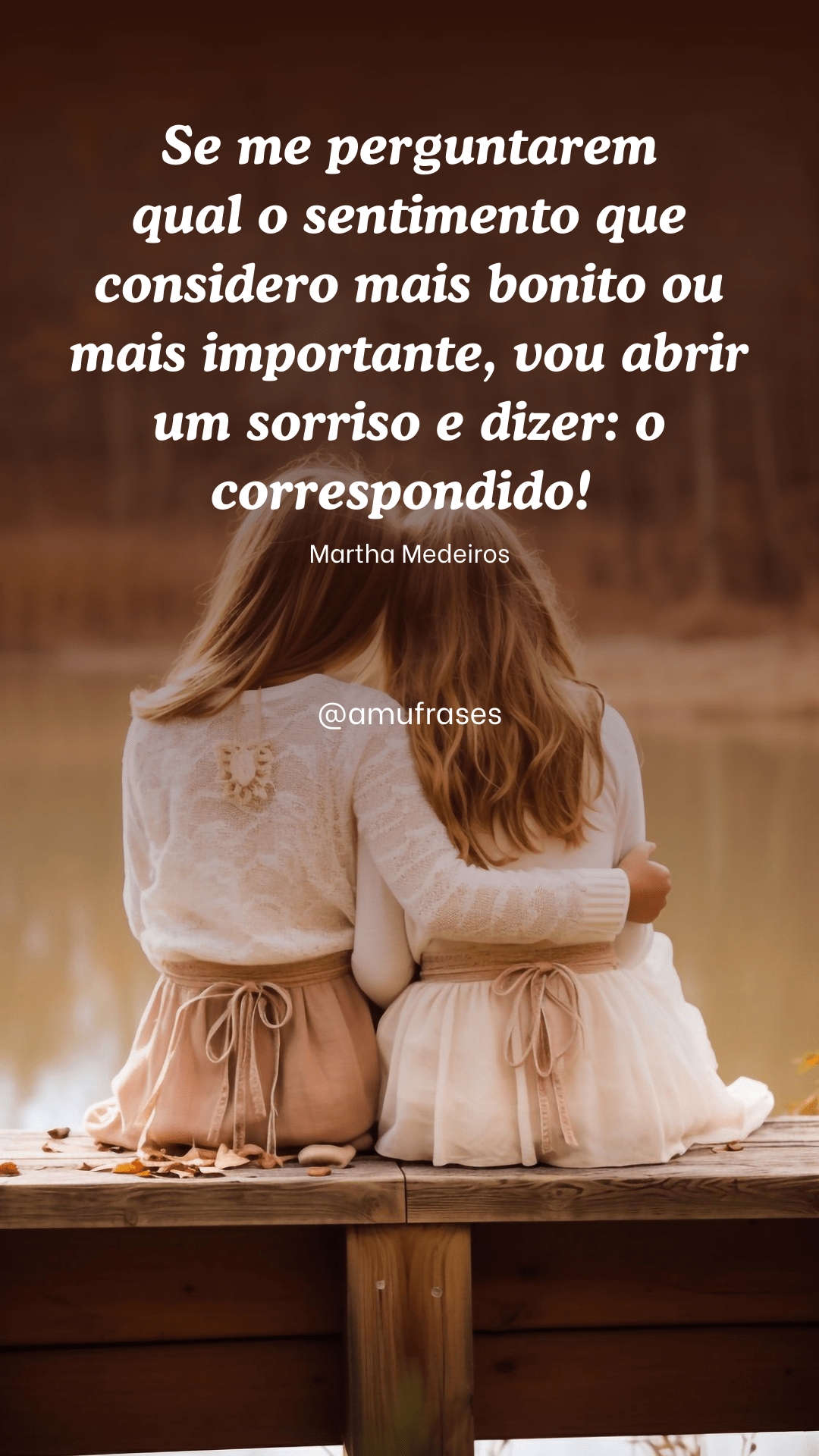 Se me perguntarem qual o sentimento que considero mais bonito ou mais importante, vou abrir um sorriso e dizer: o correspondido! Martha Medeiros – @amufrases