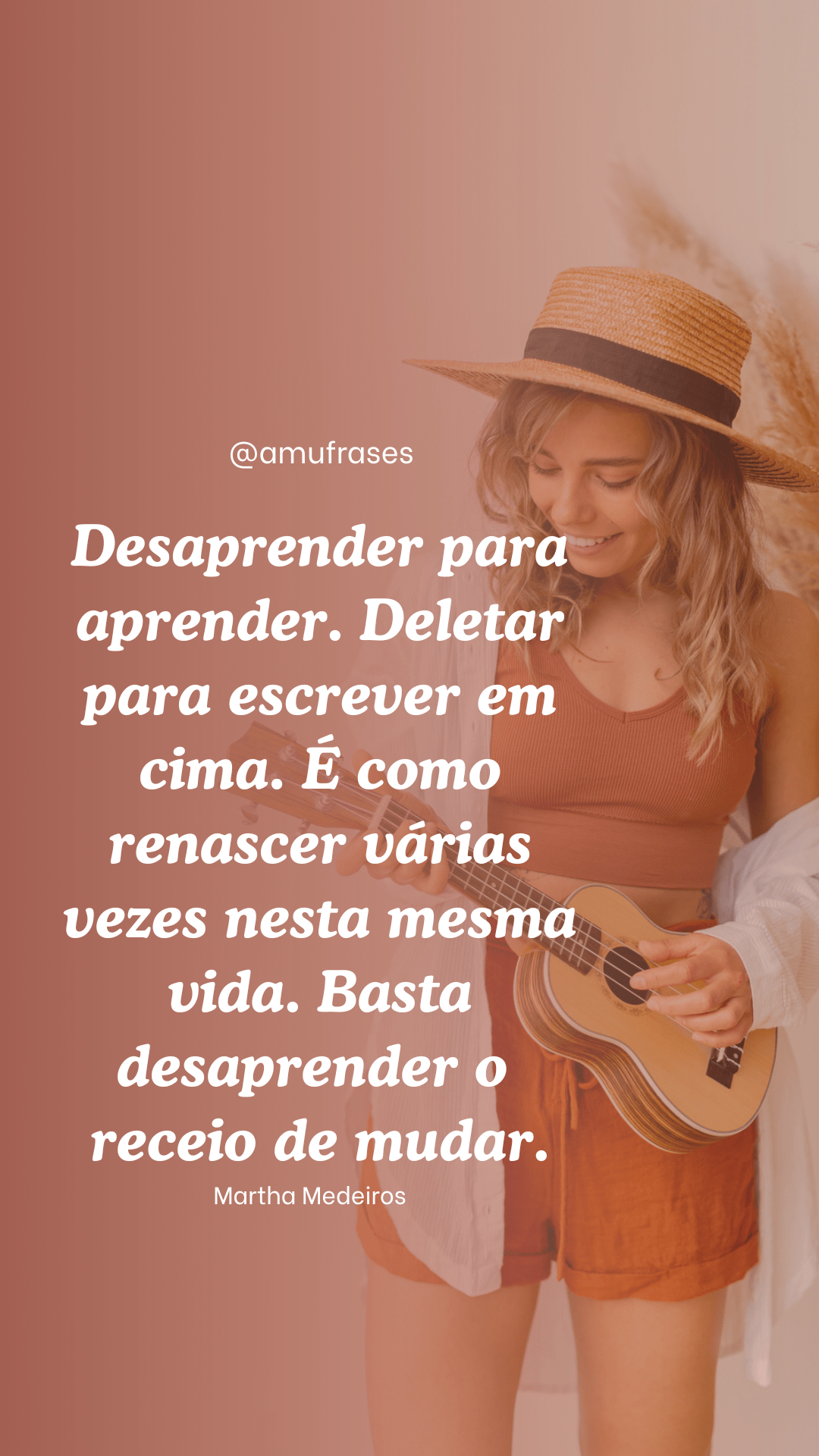 Desaprender para aprender. Deletar para escrever em cima. É como renascer várias vezes nesta mesma vida. Basta desaprender o receio de mudar. Martha Medeiros – @amufrases