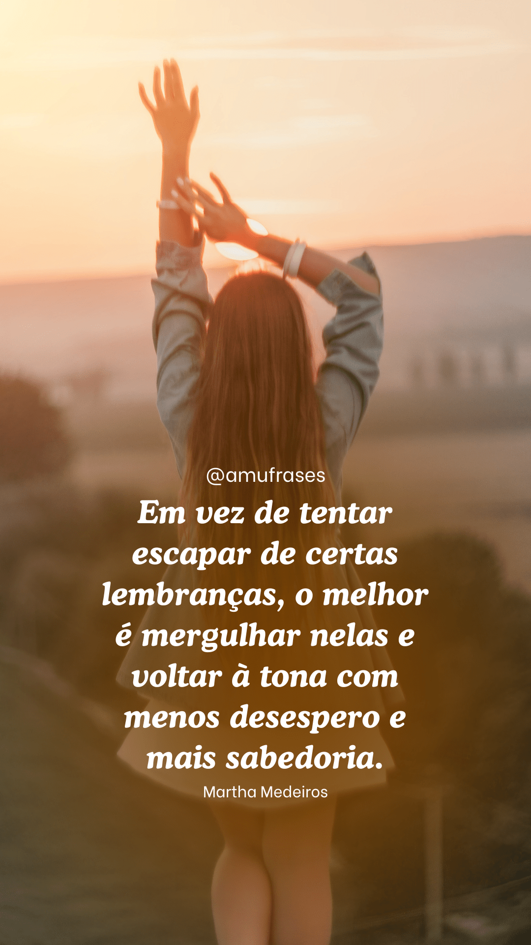 Em vez de tentar escapar de certas lembranças, o melhor é mergulhar nelas e voltar à tona com menos desespero e mais sabedoria. Martha Medeiros – @amufrases