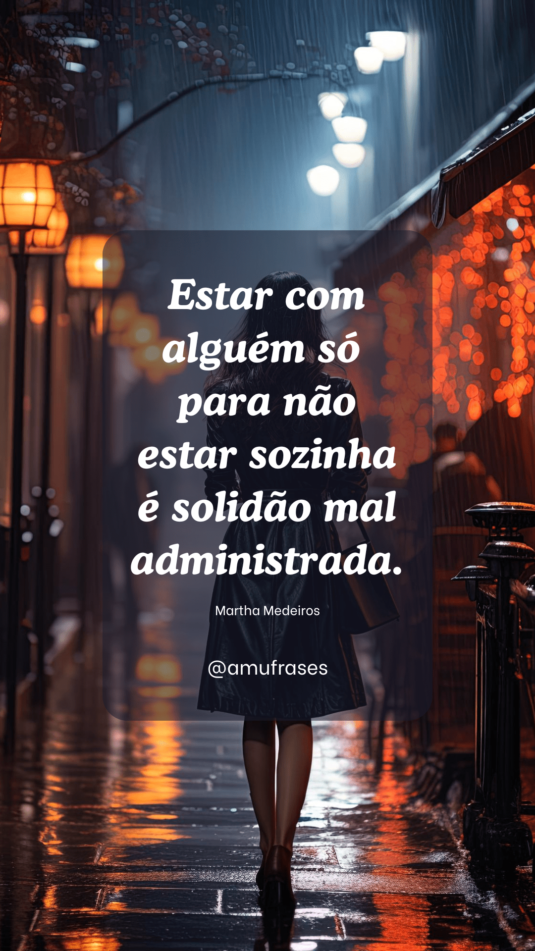 Estar com alguém só para não estar sozinha é solidão mal administrada. Martha Medeiros – @amufrases