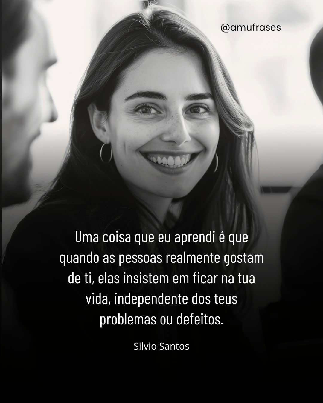 Uma coisa que eu aprendi é que quando as pessoas realmente gostam de ti, elas insistem em ficar na tua vida, independente dos teus problemas ou defeitos. Silvio Santos – @amufrases