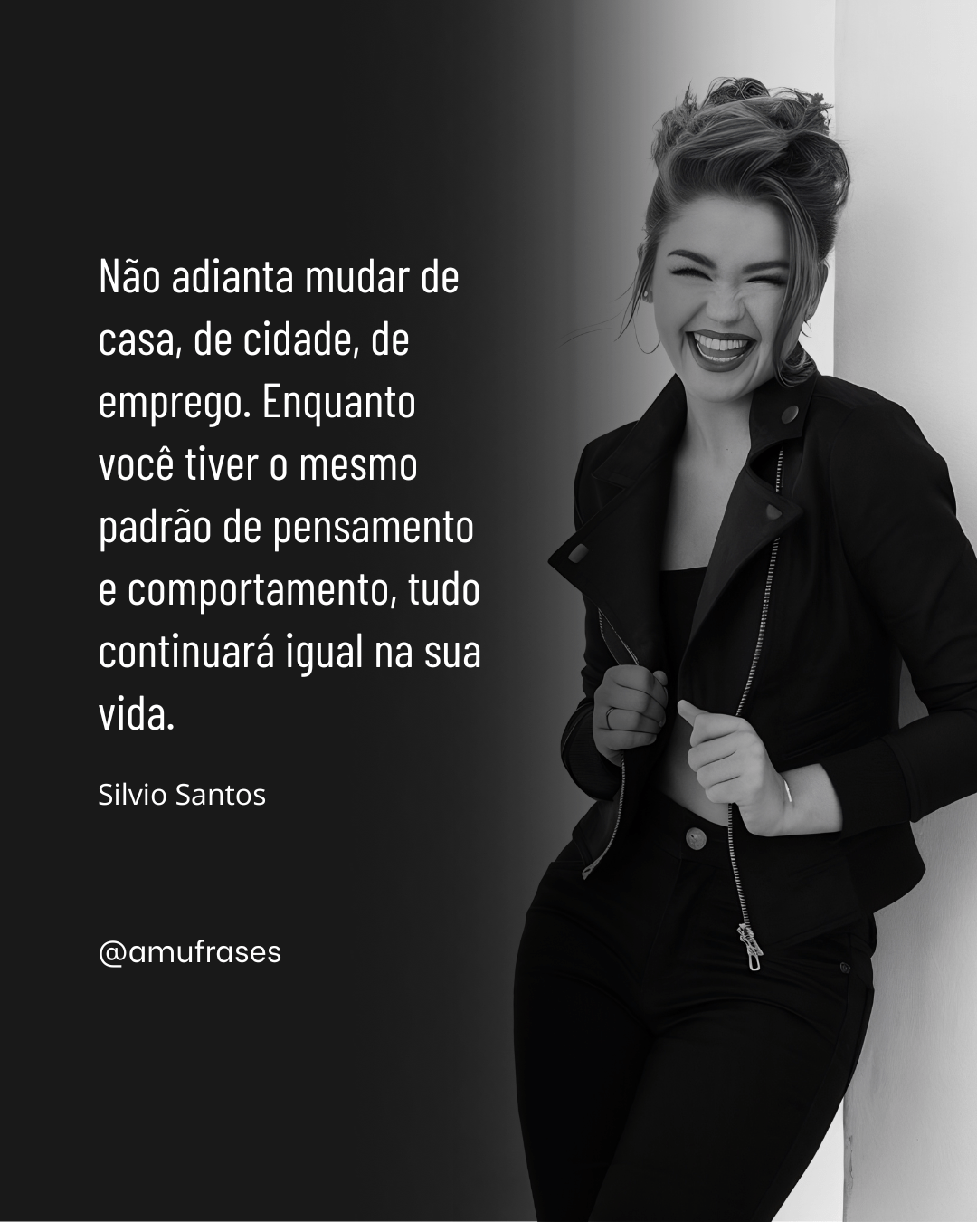 Não adianta mudar de casa, de cidade, de emprego. Enquanto você tiver o mesmo padrão de pensamento e comportamento, tudo continuará igual na sua vida. Silvio Santos – @amufrases