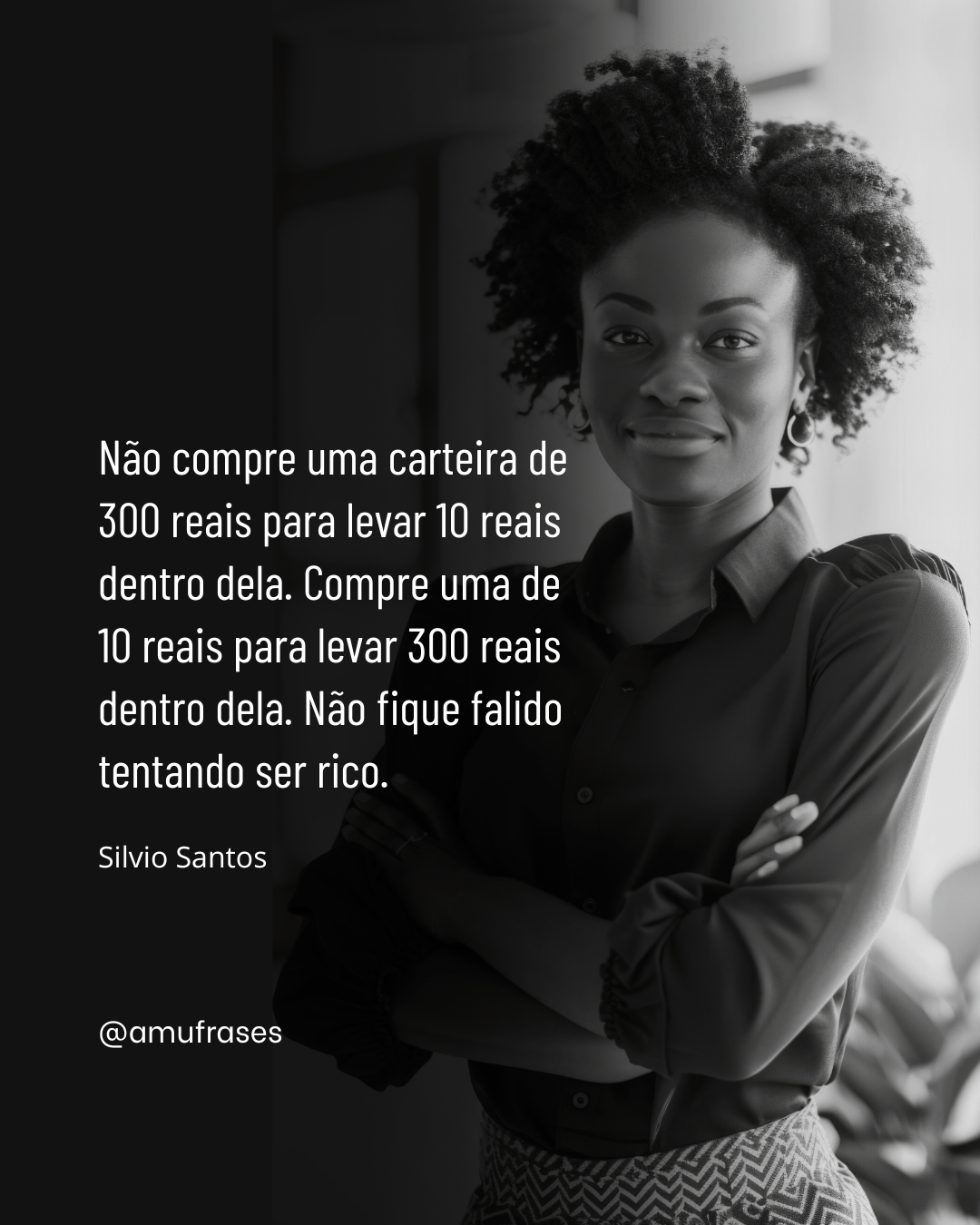 Não compre uma carteira de 300 reais para levar 10 reais dentro dela. Compre uma de 10 reais para levar 300 reais dentro dela. Não fique falido tentando ser rico. Silvio Santos – @amufrases