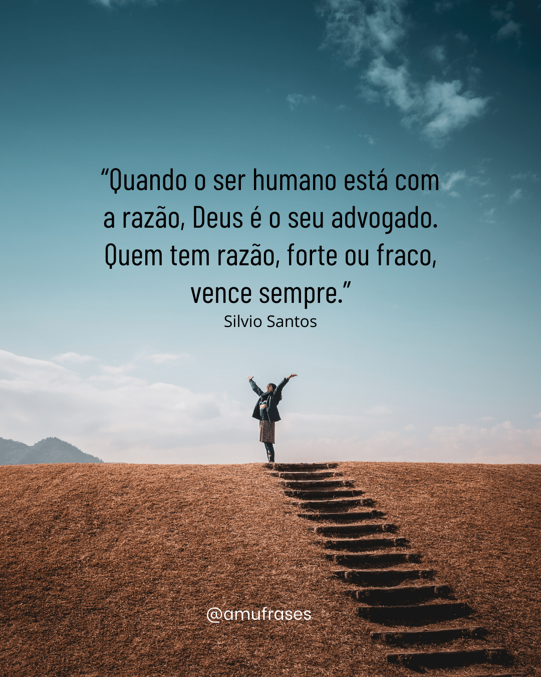 “Quando o ser humano está com a razão, Deus é o seu advogado. Quem tem razão, forte ou fraco, vence sempre.” –  Silvio Santos  @amufrases