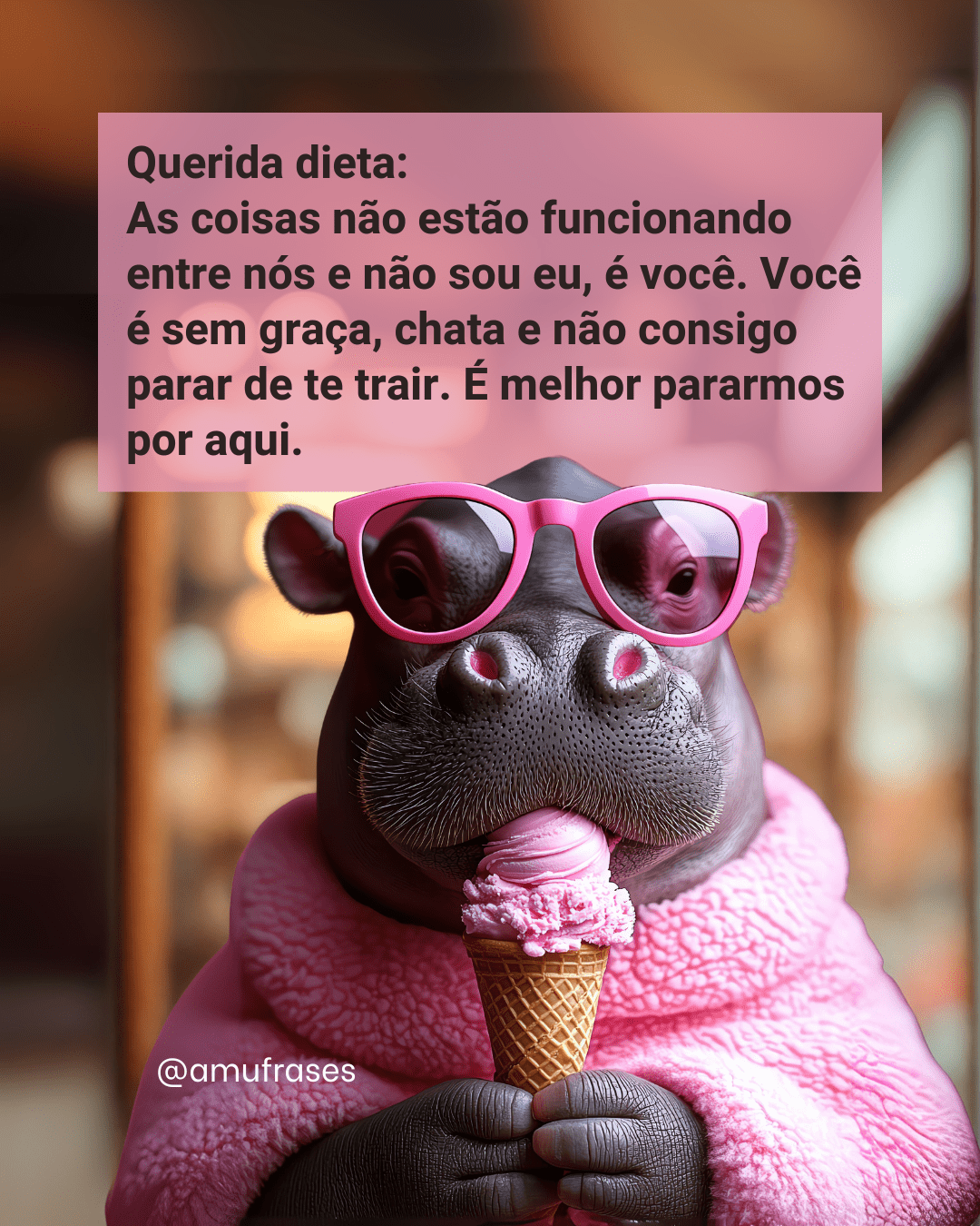 Querida dieta: As coisas não estão funcionando entre nós e não sou eu, é você. Você é sem graça, chata e não consigo parar de te trair. É melhor pararmos por aqui. – @amufrases
