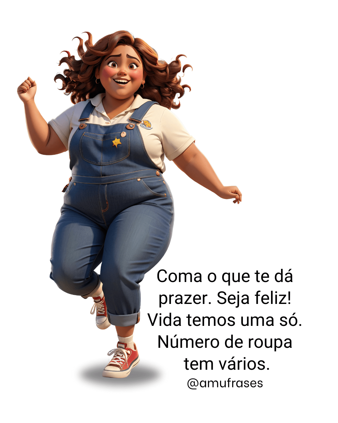 Coma o que te dá prazer. Seja feliz! Vida temos uma só. Número de roupa tem vários. – @amufrases