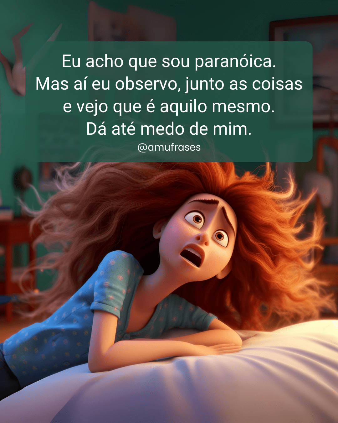 Eu acho que sou paranóica. Mas aí eu observo, junto as coisas e vejo que é aquilo mesmo. Dá até medo de mim.@amufrases