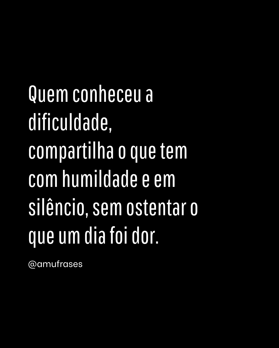 Quem conheceu a dificuldade, compartilha o que tem com humildade e em silêncio, sem ostentar o que um dia foi dor. – @amufrases
