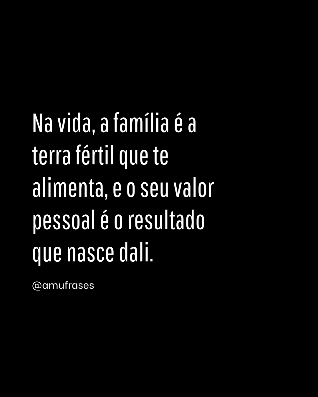 Na vida, a família é a terra fértil que te alimenta, e o seu valor pessoal é o resultado que nasce dali. – @amufrases