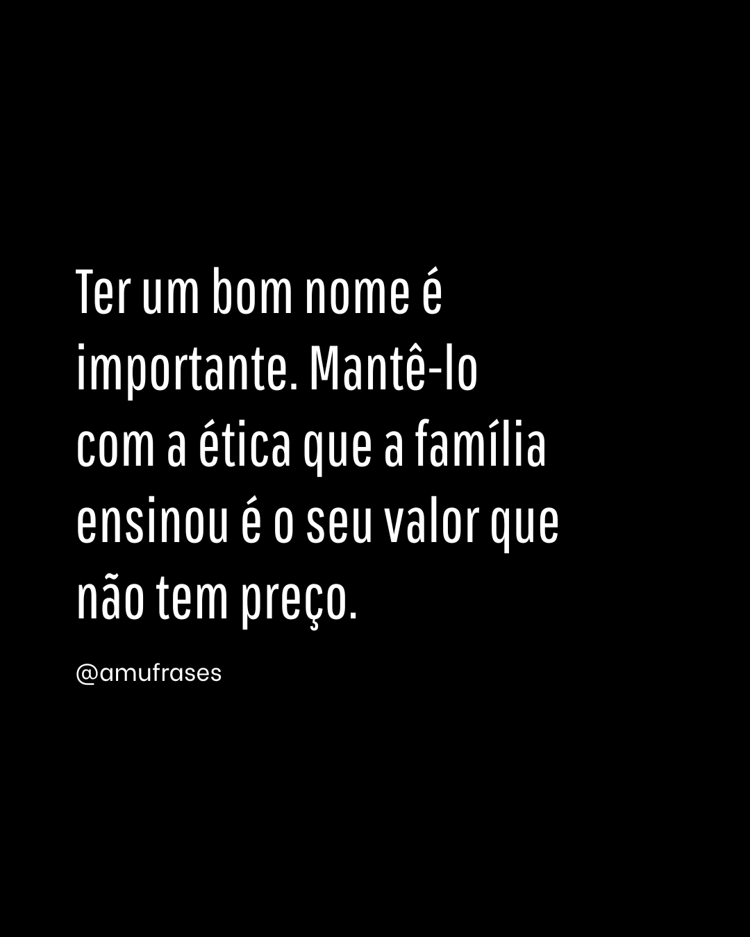 Ter um bom nome é importante. Mantê-lo com a ética que a família ensinou é o seu valor que não tem preço. – @amufrases