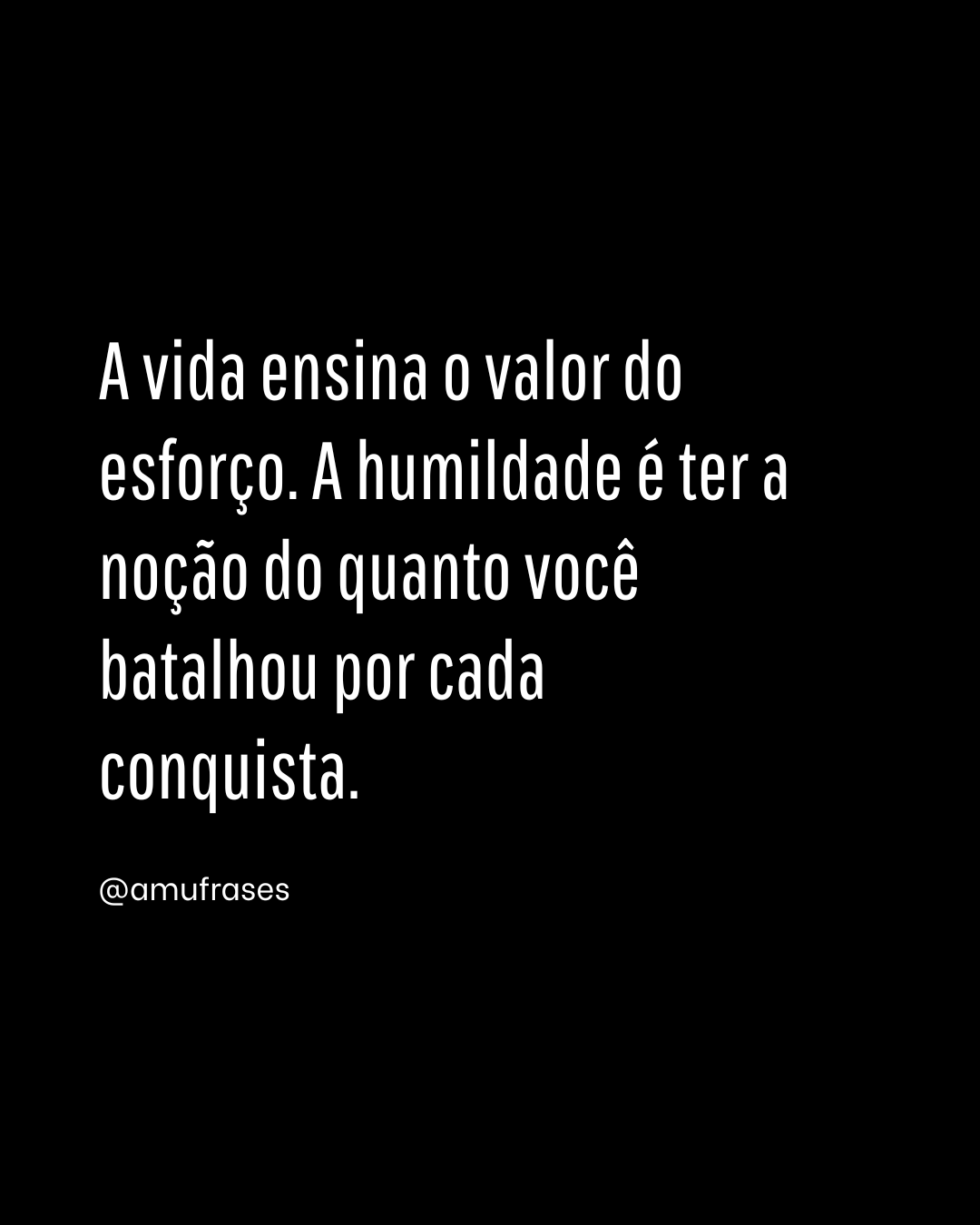 A vida ensina o valor do esforço. A humildade é ter a noção do quanto você batalhou por cada conquista. – @amufrases