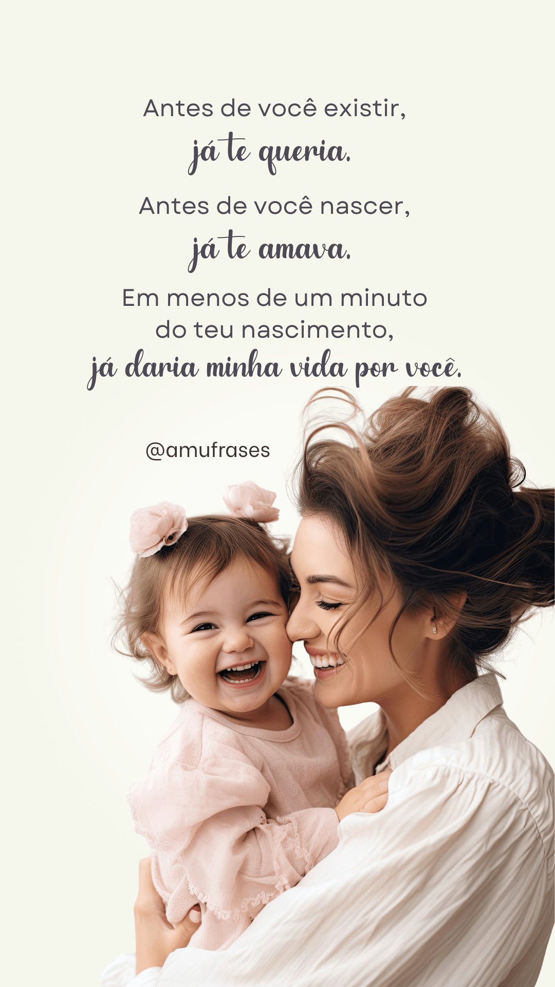 Antes de você existir, já te queria. Antes de você nascer, já te amava. Em menos de um minuto do teu nascimento, já daria minha vida por você. – @amufrases