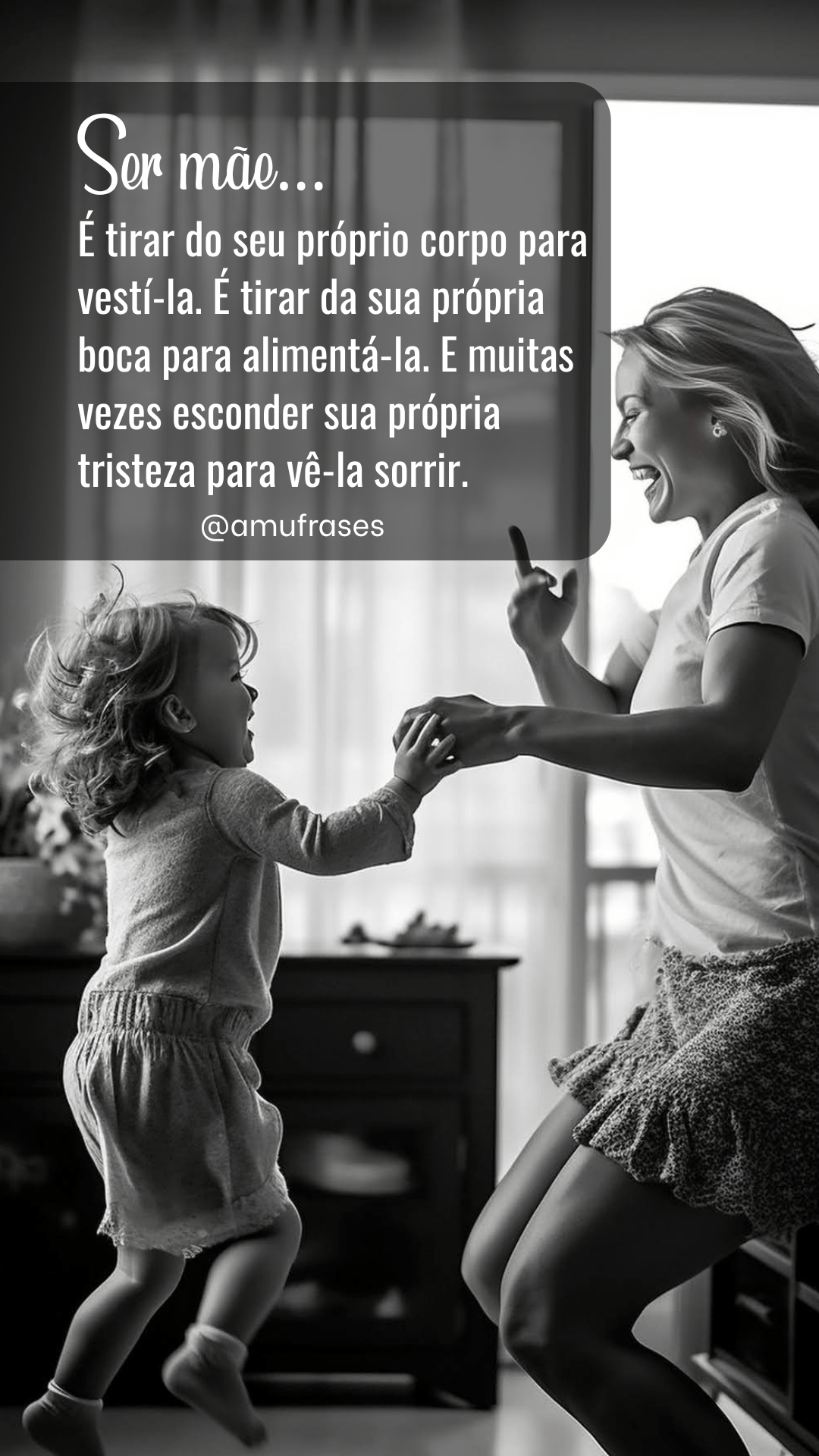 Ser mãe de menina é… é tirar do seu próprio corpo para vesti-la. É tirar da sua própria boca para alimentá-la. E muitas vezes esconder sua própria tristeza para vê-la sorrir. – @amufrases