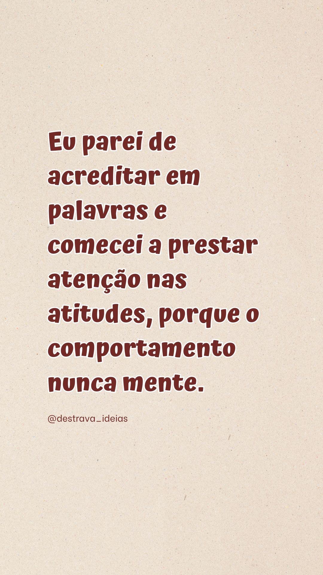 Eu parei de acreditar em palavras e comecei a prestar atenção nas atitudes, porque o comportamento nunca mente. – @amufrases