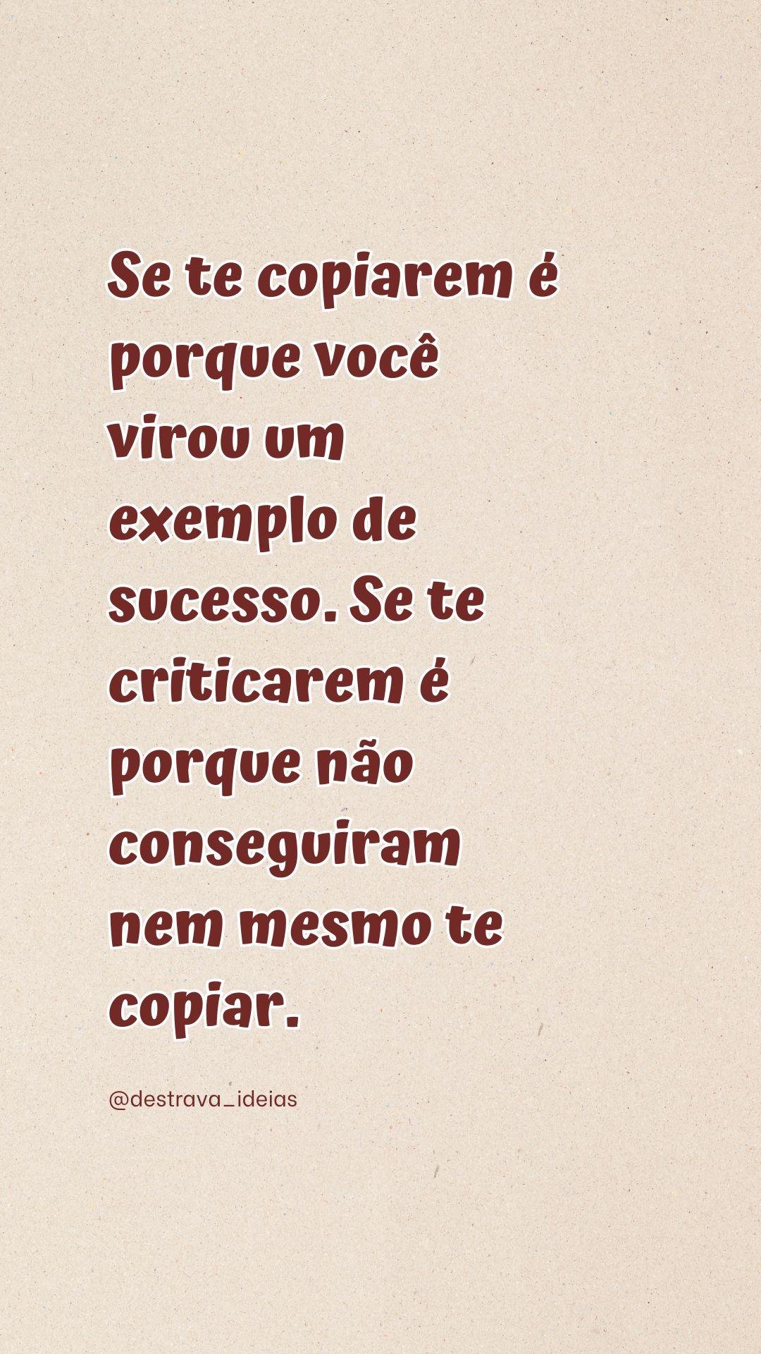 Se te copiarem é porque você virou um exemplo de sucesso. Se te criticarem é porque não conseguiram nem mesmo te copiar. @amufrases