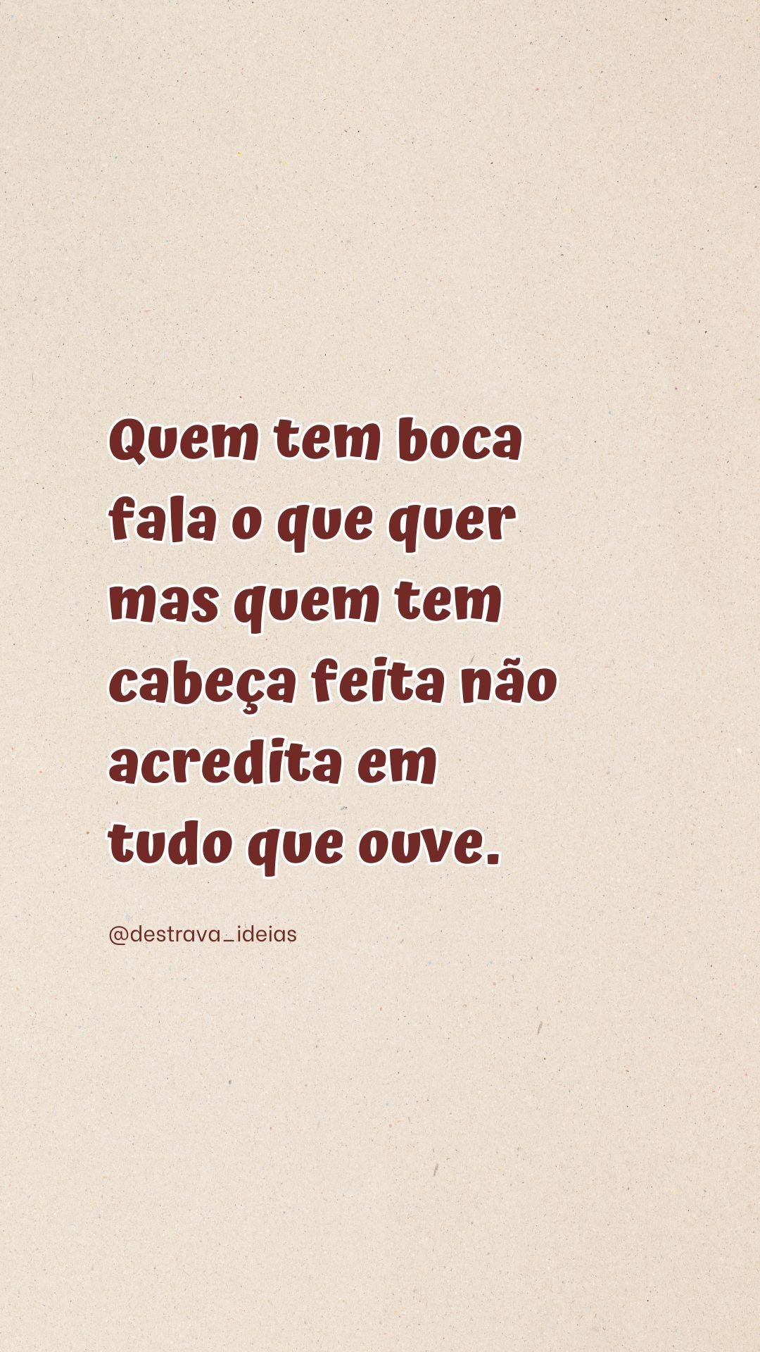 Quem tem boca fala o que quer mas quem tem cabeça feita não acredita em tudo que ouve. @amufrases