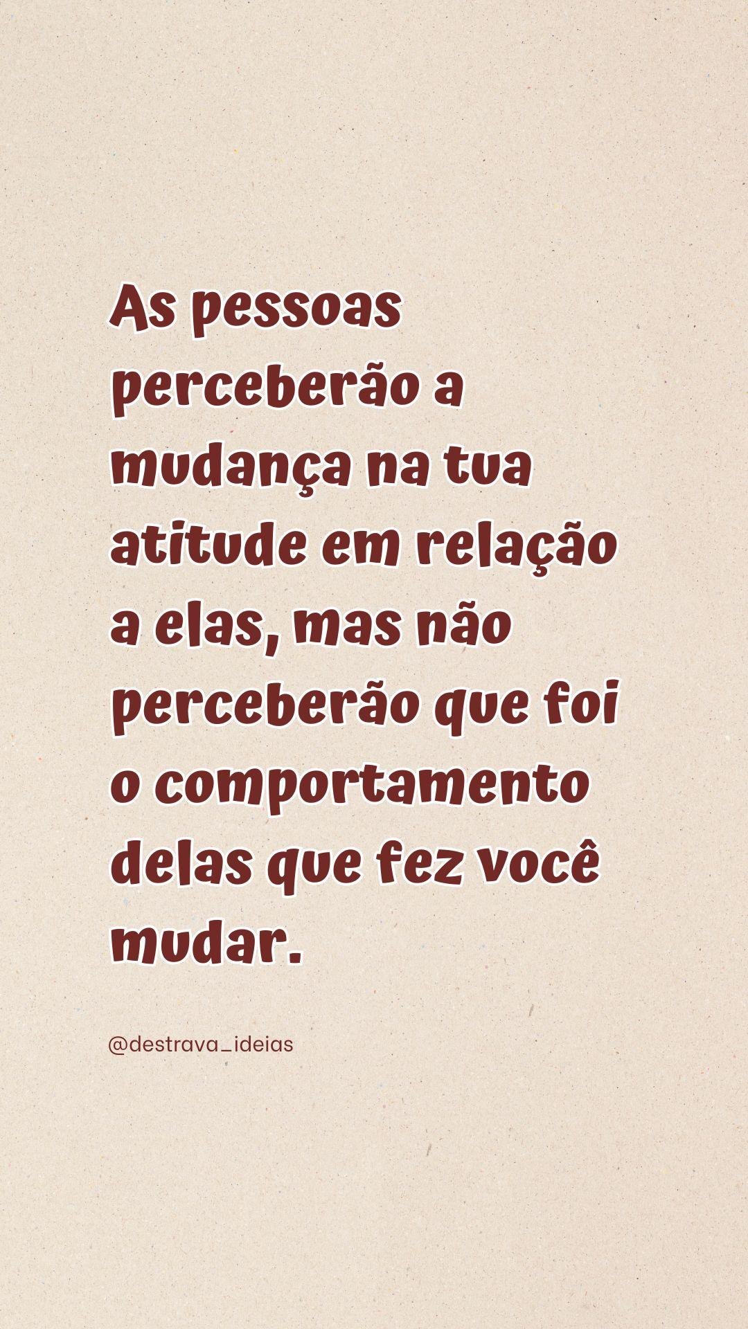 As pessoas perceberão a mudança na tua atitude em relação a elas, mas não perceberão que foi o comportamento delas que fez você mudar. @amufrases