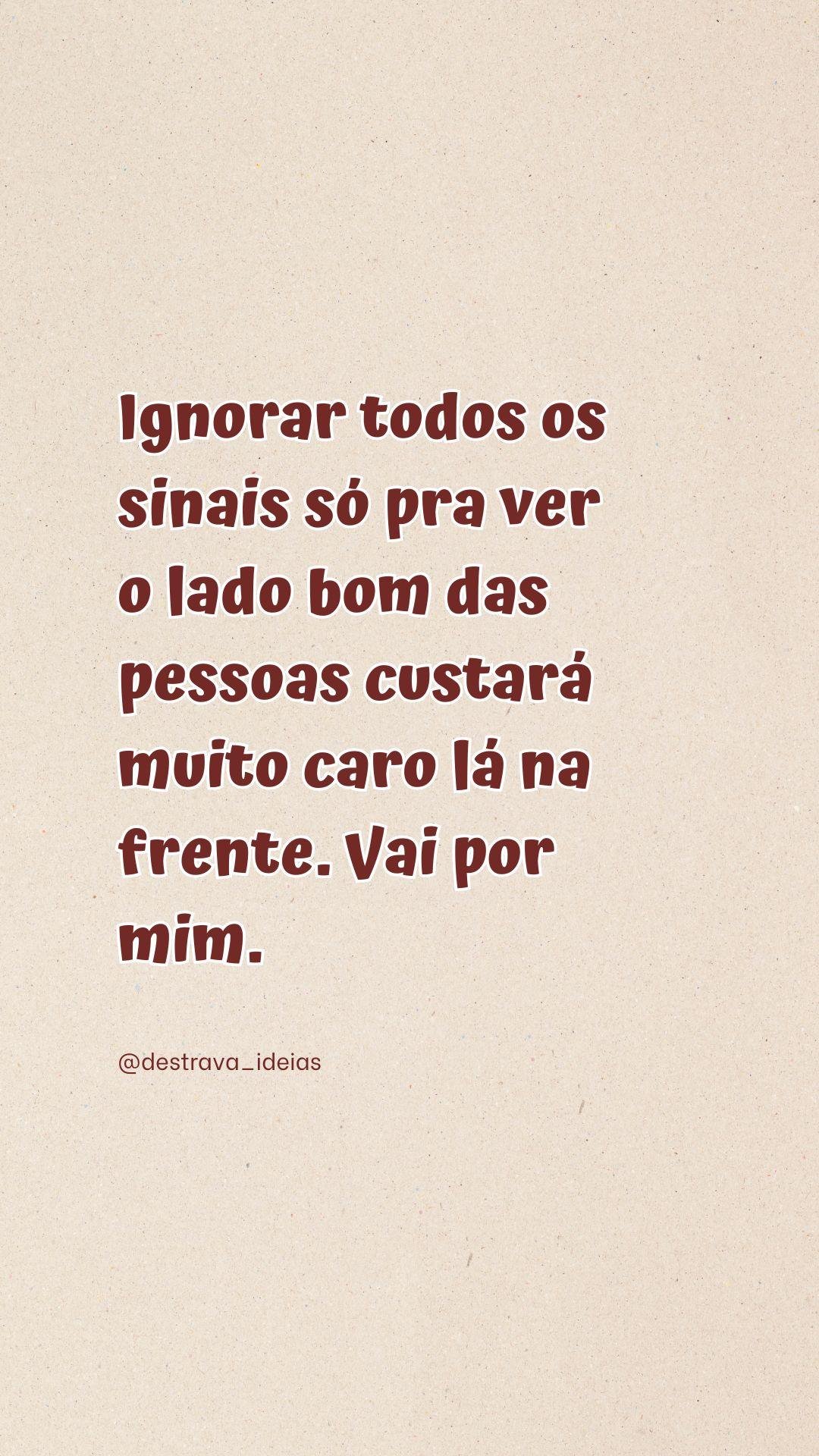 Ignorar todos os sinais só pra ver o lado bom das pessoas custará muito caro lá na frente. Vai por mim. @amufrases