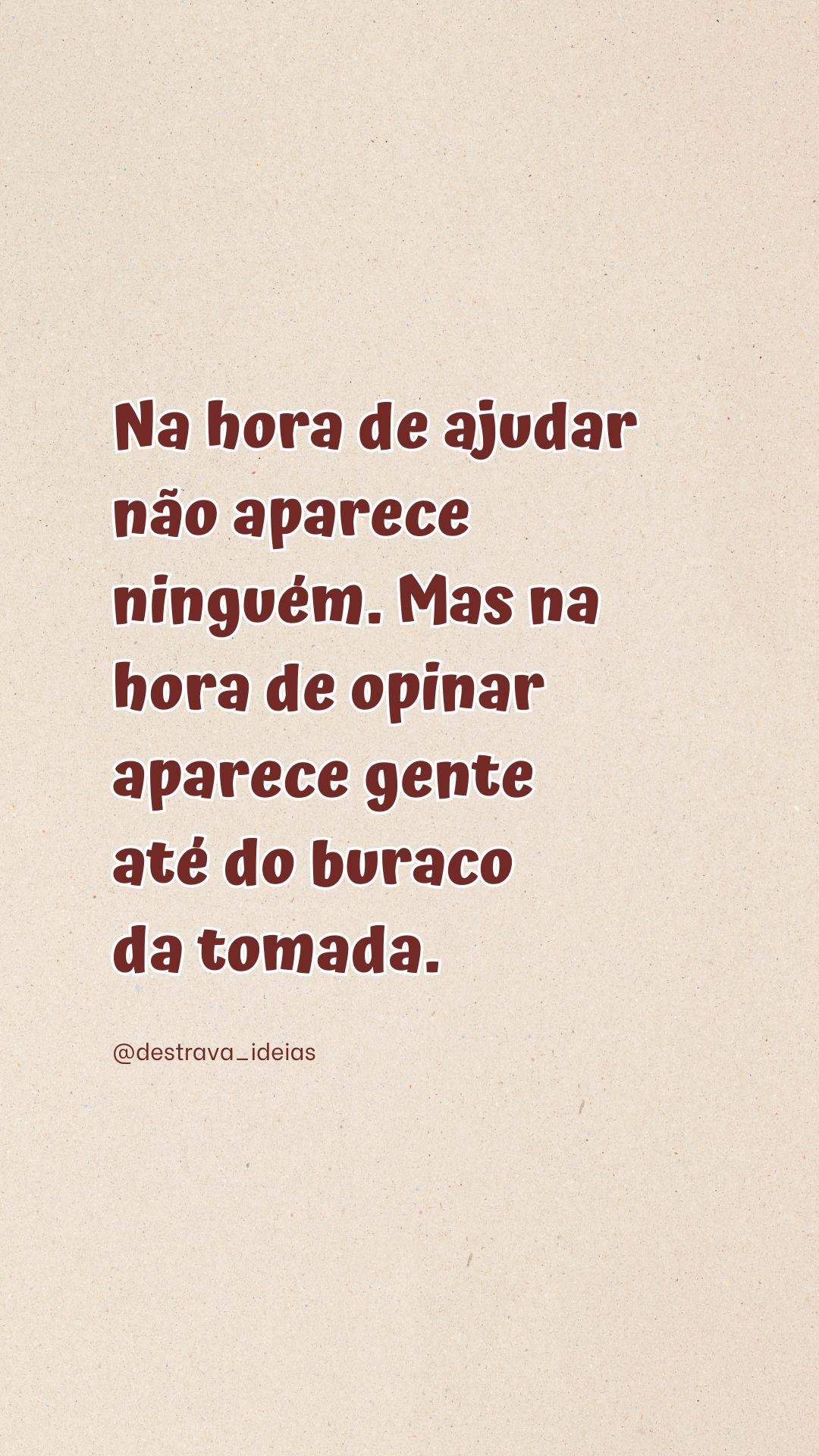 Na hora de ajudar não aparece ninguém. Mas na hora de opinar aparece gente até do buraco da tomada. @amufrases