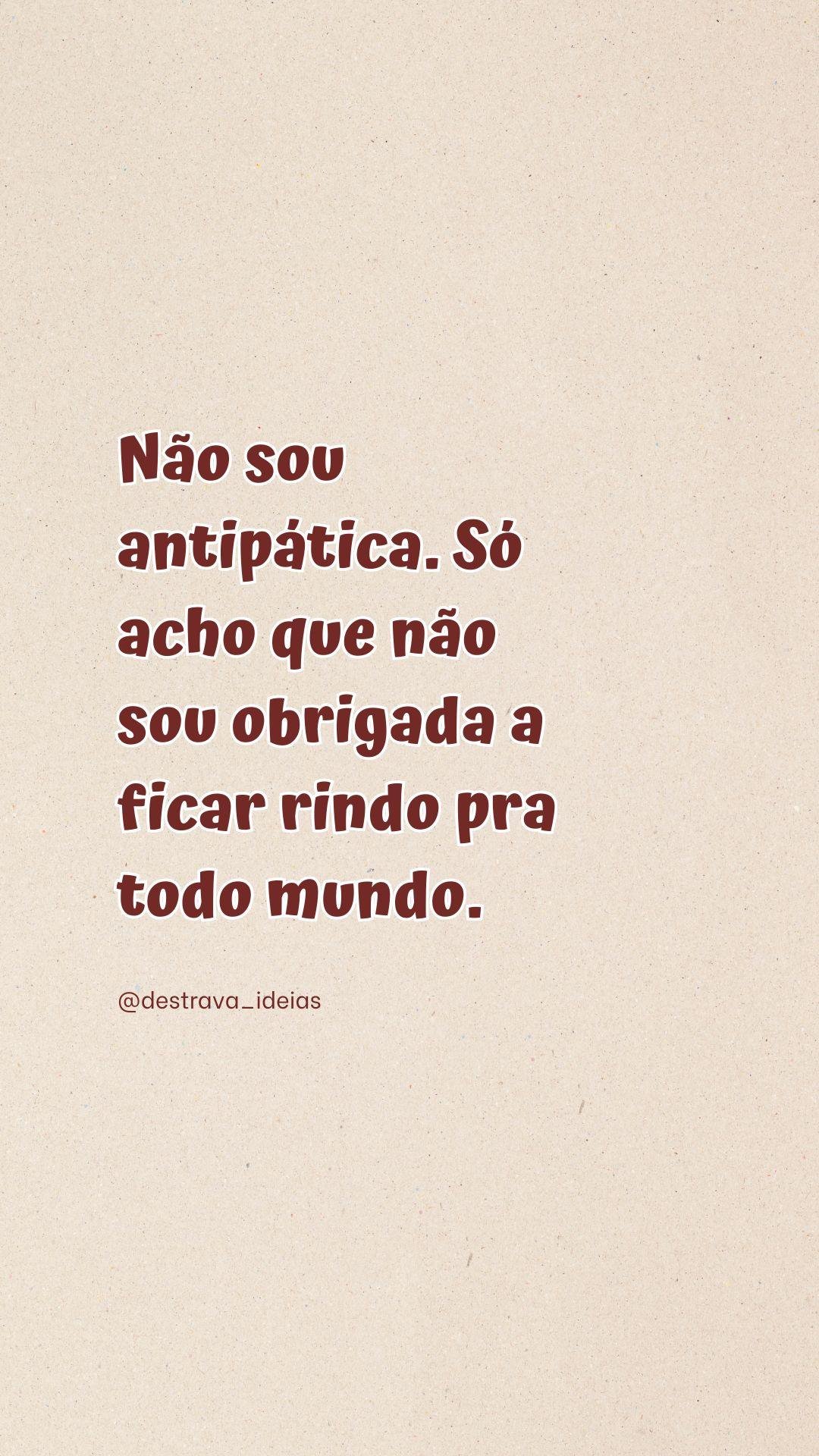 Não sou antipática. Só acho que não sou obrigada a ficar rindo pra todo mundo. @amufrases