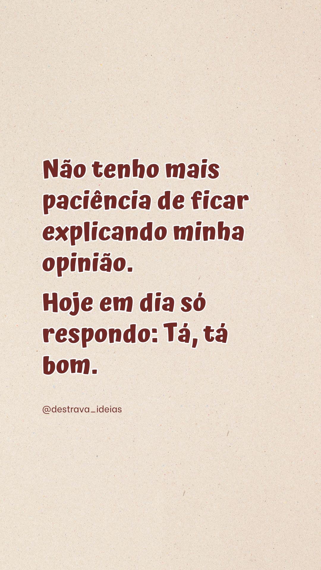 Não tenho mais paciência de ficar explicando minha opinião. Hoje em dia só respondo: Tá, tá bom. @amufrases