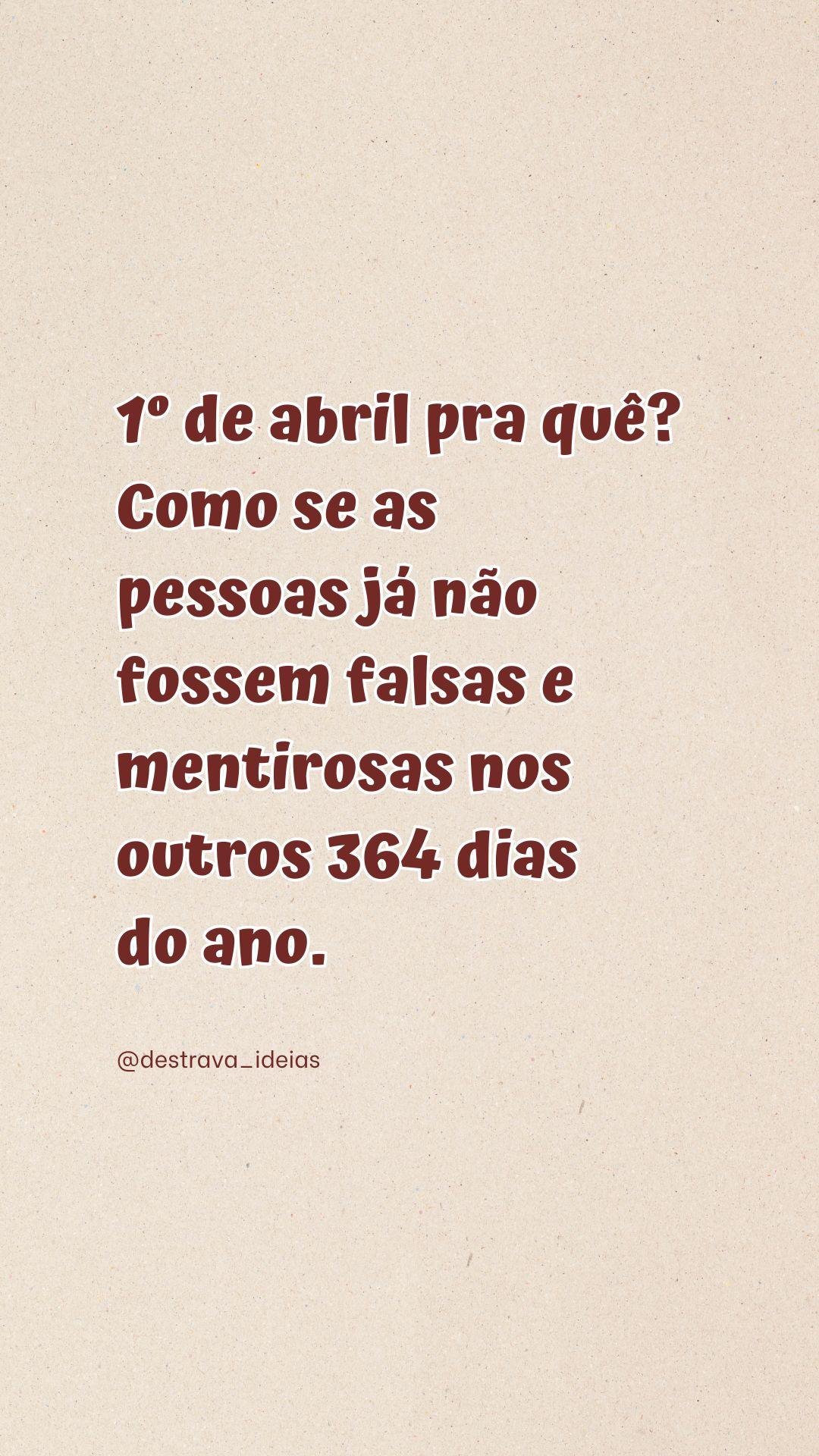 1º de abril pra quê? Como se as pessoas já não fossem falsas e mentirosas nos outros 364 dias do ano. @amufrases