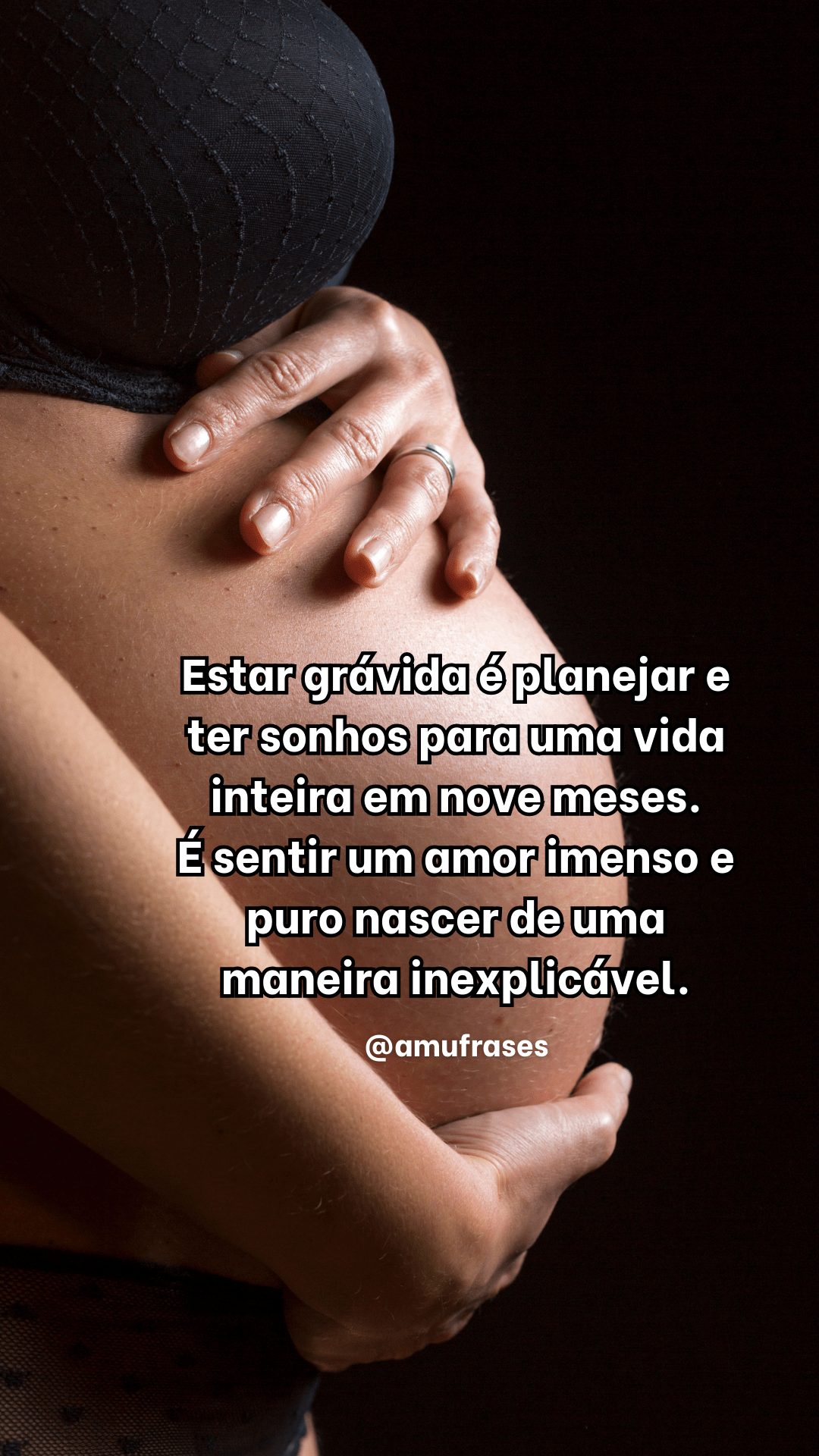 Estar grávida é planejar e ter sonhos para uma vida inteira em nove meses. É sentir um amor imenso e puro nascer de uma maneira inexplicável. – @amufrases